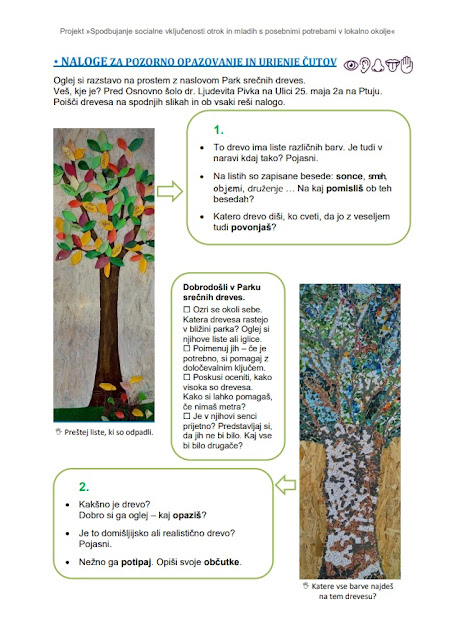 - naloge za pozorno opazovanje in urjenje čutov (namenjene uporabi ob ogledu parka).